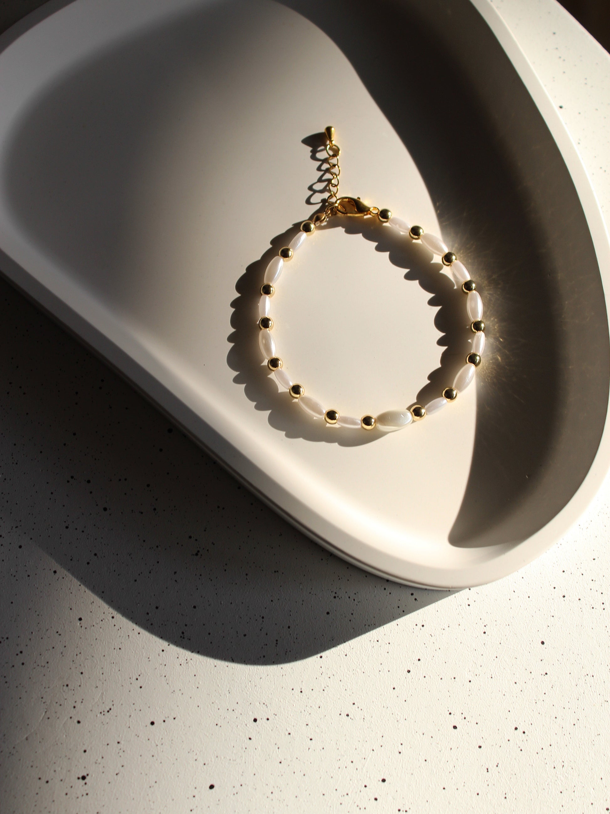 Dieses zarte Armband vereint schlichte Eleganz mit hochwertiger Verarbeitung. Dünne, feine Perlmuttperlen verleihen dem Schmuckstück einen sanften Schimmer und eine zeitlose Leichtigkeit. Kleine Edelstahlperlen setzen dezente, moderne Akzente und sorgen für eine harmonische Balance im Design.