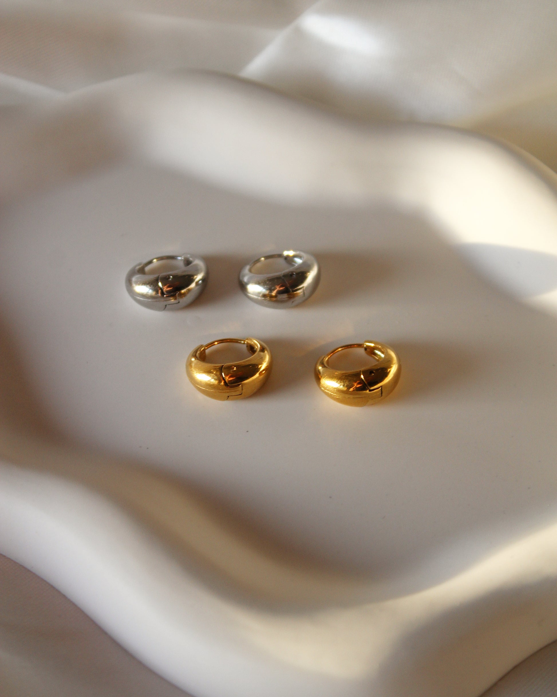 Diese kleine, elegant geformte Creole überzeugt durch ihr schlichtes Design mit feinem Detail: Sie ist von oben schmal und wird nach unten dezent breiter, was ihr eine moderne, fließende Form verleiht. Gefertigt aus hochwertigem Edelstahl, ist sie wahlweise in klassischem Silber oder mit edler 18k Vergoldung erhältlich.