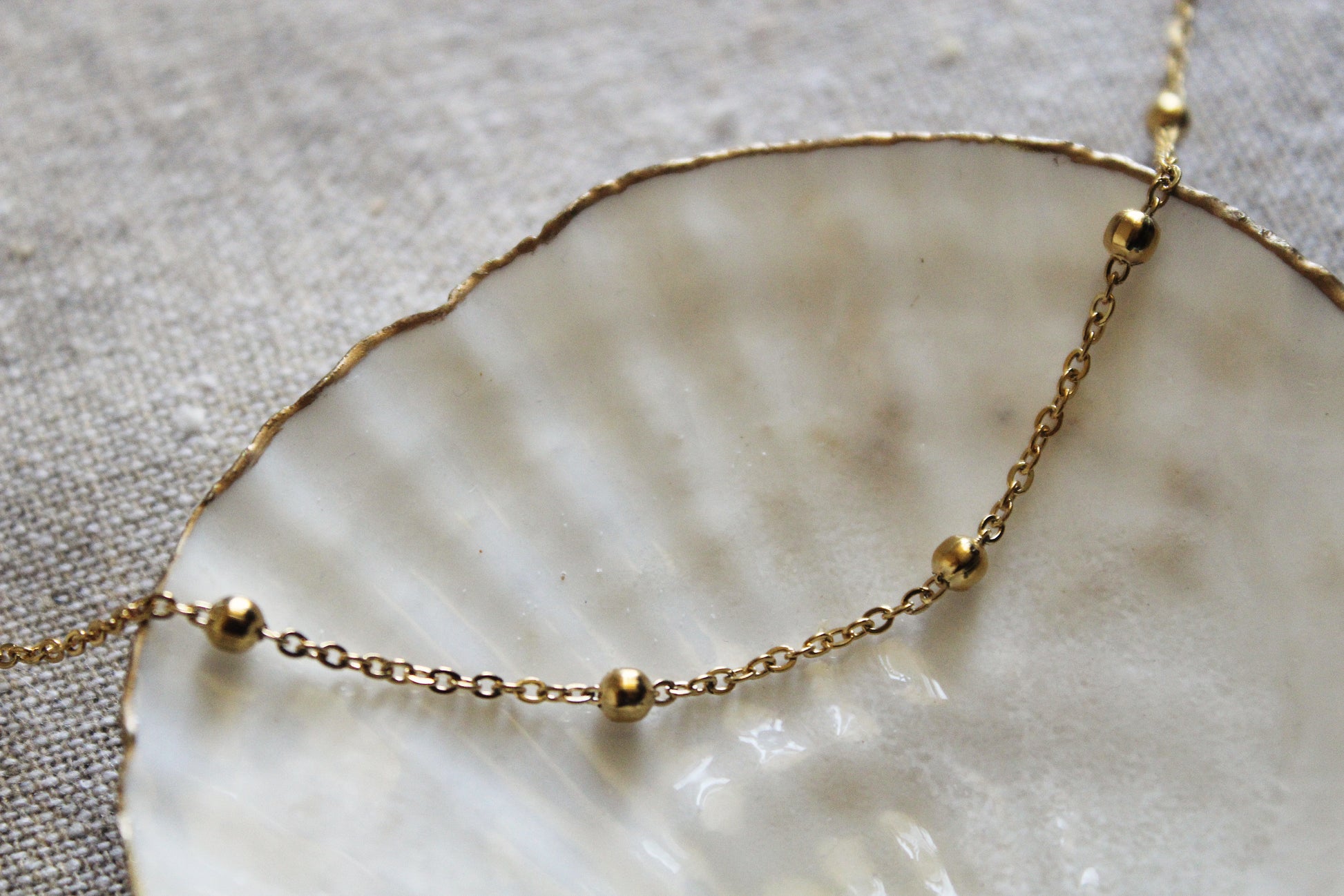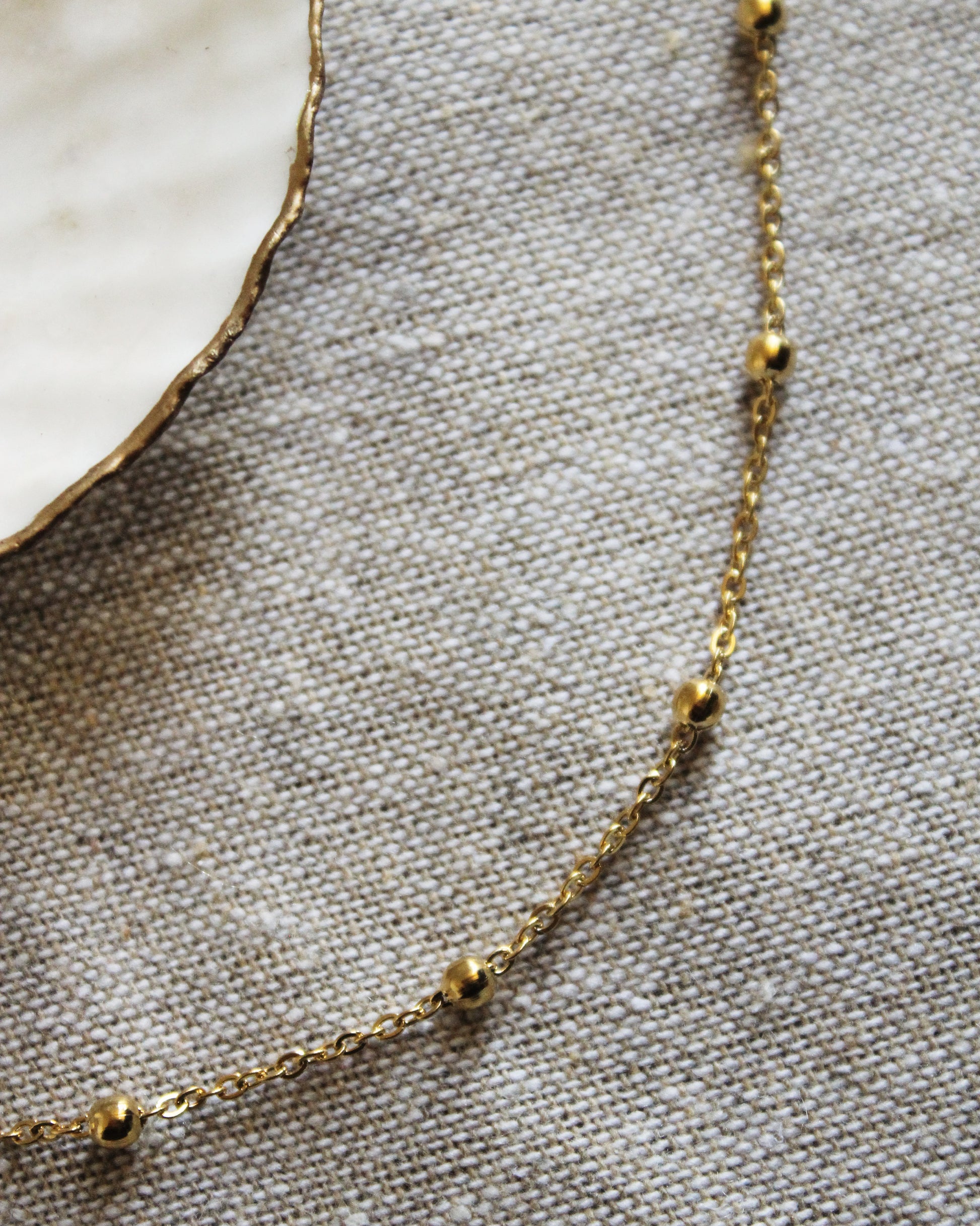 Die feinen, gleichmäßig angeordneten Kugeln entlang der Kette verleihen ihr eine besondere Struktur und machen sie solo getragen ebenso wirkungsvoll wie im Layering-Look.