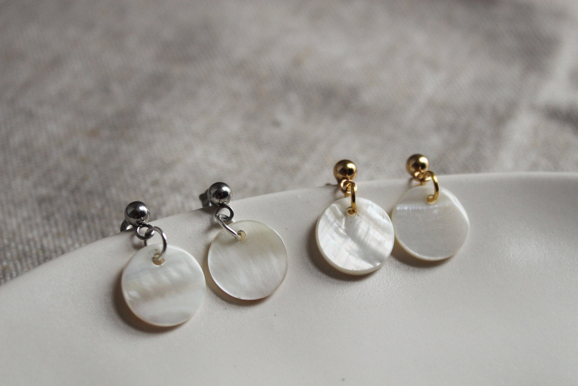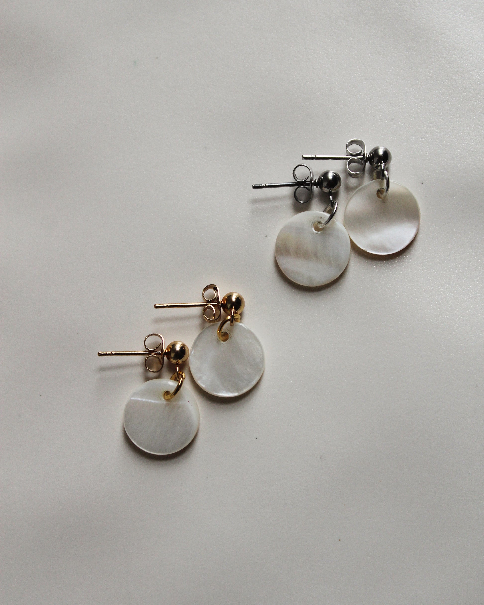 Die Kombination aus glänzendem Metall und schimmerndem Perlmutt macht die Ohrringe zu einem vielseitigen Begleiter – schlicht genug für den Alltag, aber auch passend zu besonderen Anlässen.