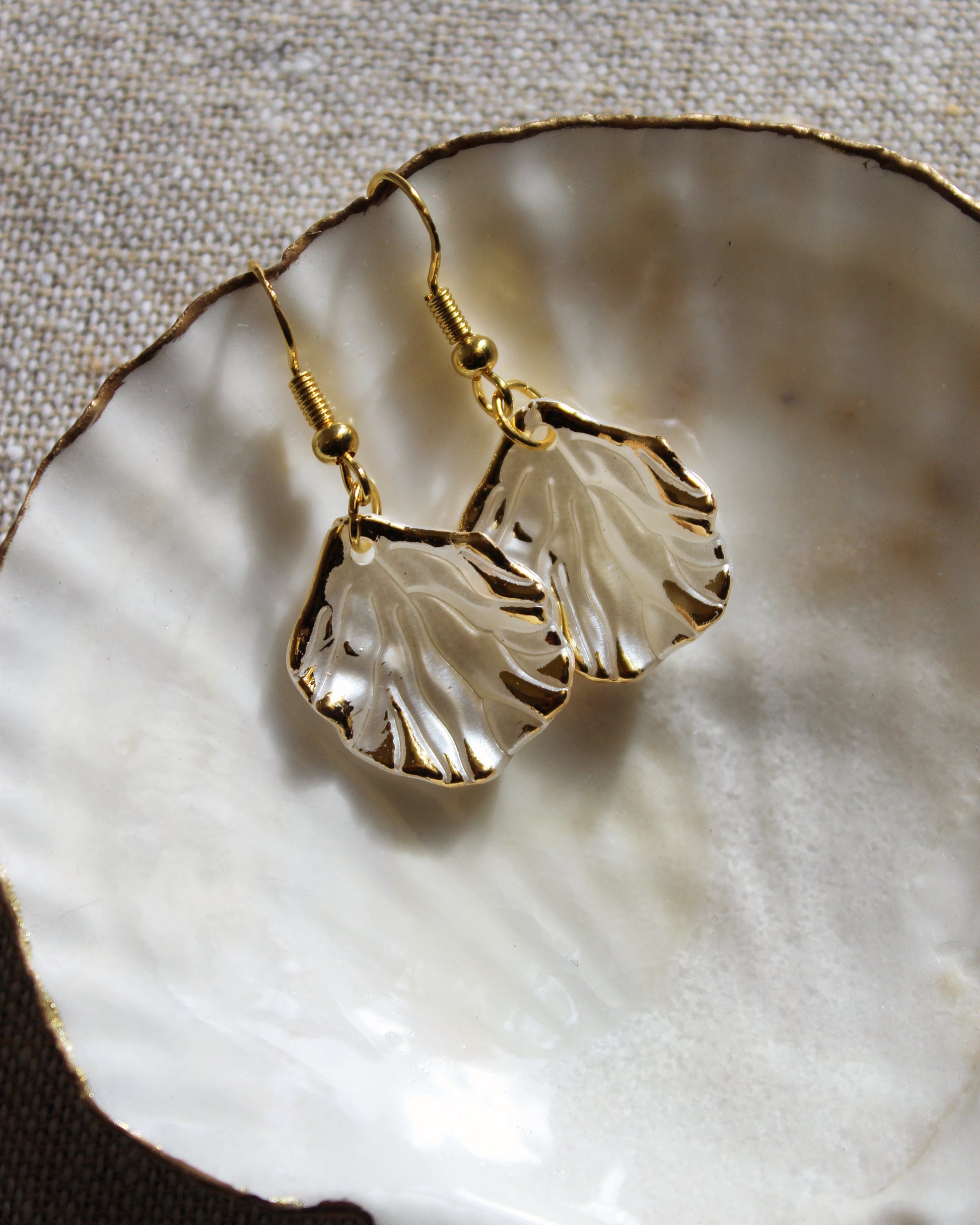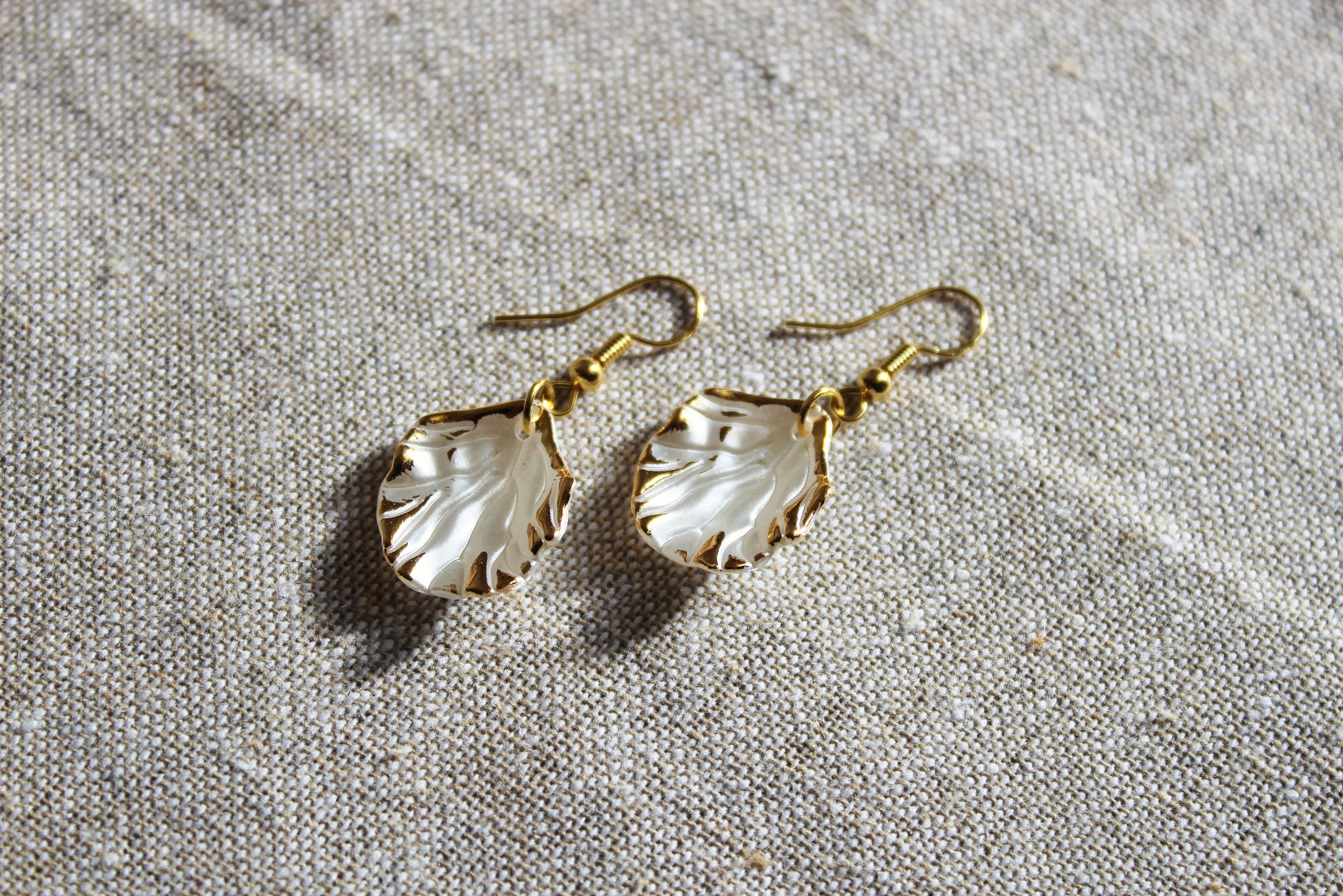 Diese eleganten Ohrringe bestehen aus echtem 925er Silber und sind wahlweise pur silberfarben oder mit echter 18k Vergoldung veredelt. Der feine, blattähnliche Anhänger verleiht dem Design eine natürliche, organische Form und wird von einem zarten Goldrand umschlossen, der das Schmuckstück dezent betont.