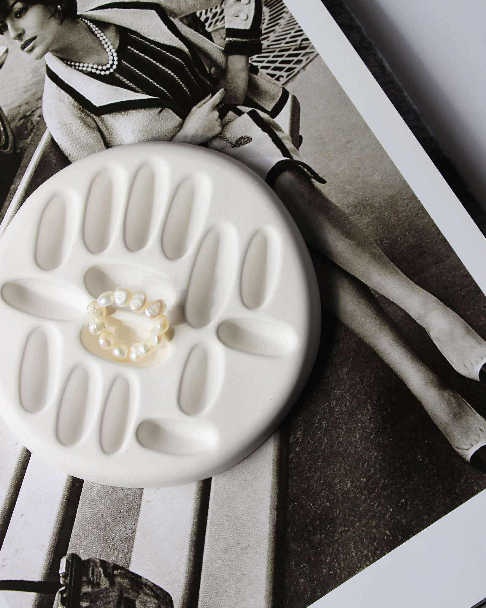 Diese minimalistische Ringschale aus hochwertigem Keraflott wird in liebevoller Handarbeit gefertigt und bietet den perfekten Platz für deine Lieblingsringe. Ihr schlichtes, zeitloses Design macht sie zu einem stilvollen Begleiter auf dem Nachttisch, im Bad oder auf der Schmuckkommode.